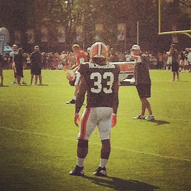 The offensive line protected well today in full-team drills, and I really believe that they just need a full and healthy camp to be a productive unit this fall. Mitchell Schwartz becomes the third member of Believing Since 1999’s Freakishly Large Man Team (Sense a theme here? I really didn’t intend for it when I sat down to write this, but let’s roll with it.), and has a mean streak at right tackle. With fellow Cal boy Mack to his left, he should feel comfortable in there and produce for us. The Browns don’t need 5 Pro-Bowlers to keep Weeden upright, and it looks like Pinkston, Thomas, Mack, Schwartz, and Lauvao can be more than serviceable.