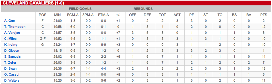 I think it’s safe to assume that we will eventually see Waiters in that spot in the back court next to Kyrie, but for their first game of the preseason, there isn’t much to complain about. I like the 7 boards from Zeller. It’s good to see that he’s already doing what we drafted him to do. The Cavs play a real live NBA team tonight when the Bucks come to town, so we’ll elaborate more on them as the preseason unfolds. Lot’s to be excited about.