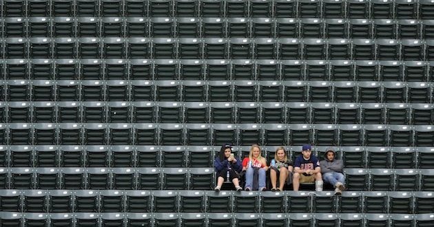 The Indians aren’t in first place this year, and they probably won’t finish that way either (even though Detroit has dropped two in a row). But last night at Progressive Field, the attendance was 9,794.